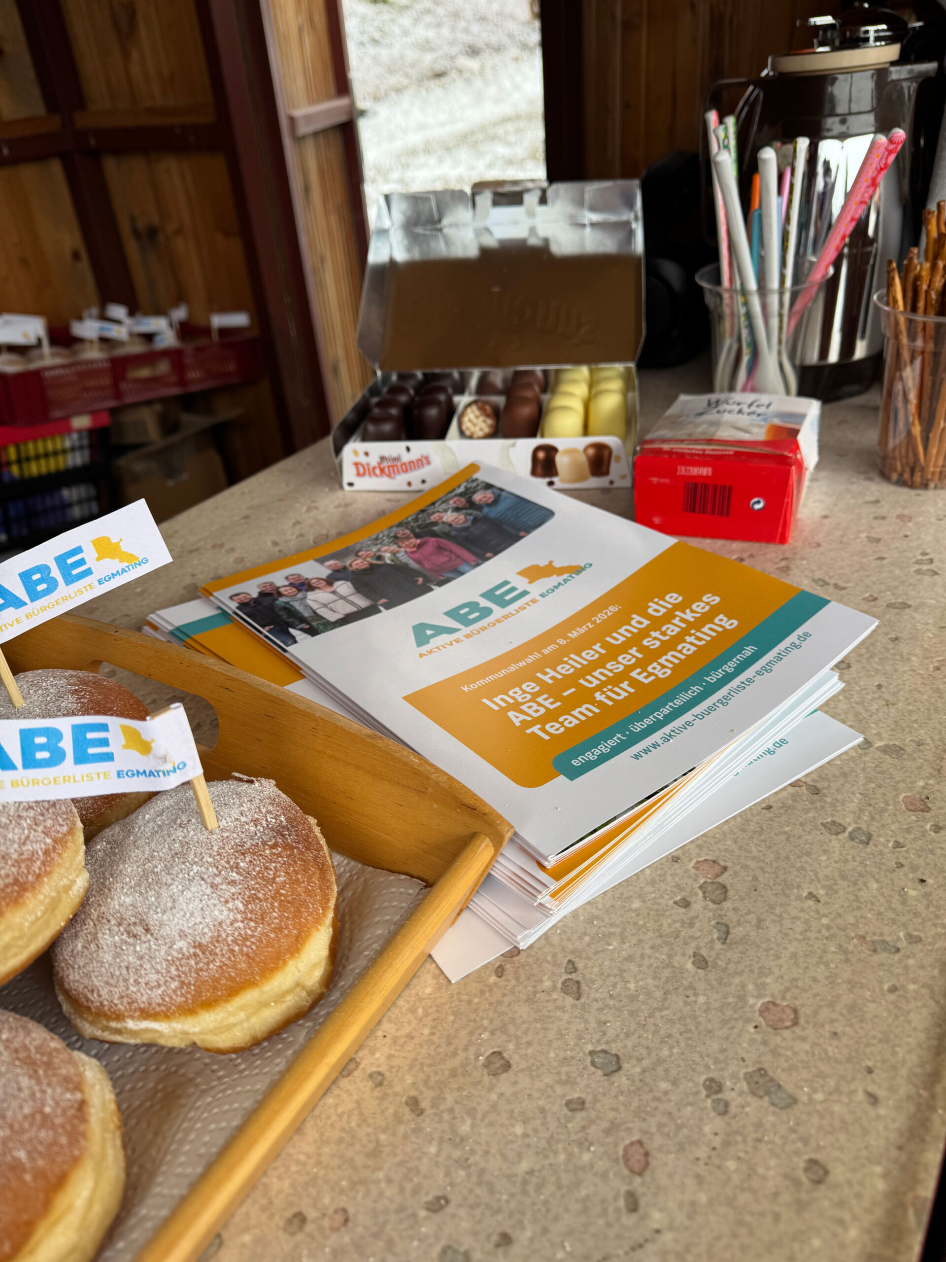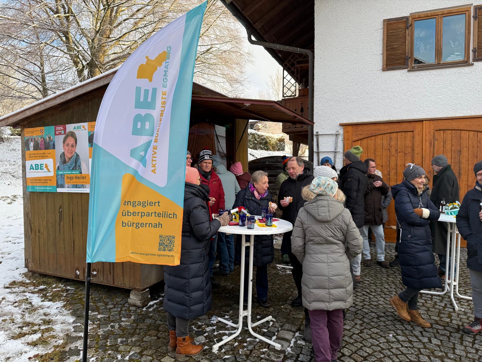 Vielen Dank für Euren Besuch – in der Regenpause am gestrigen Sonntag machten sich viele von Euch auf den Weg zur ABE-Wahl-Info-Hütte in Egmating. Wir durften Euch mit warmen Punsch, Kaffee, regional erzeugtem Eierlikör vom Obermaierhof in Egmating und Krapfen aus dem Dorfladen versorgen. Danke für den regen Austausch, die Bestätigung zu unserer Politik, aber auch den zahlreichen Anregungen und Wünschen wie beim Spielplatz am Ried oder der Trinkwasserversorgung.