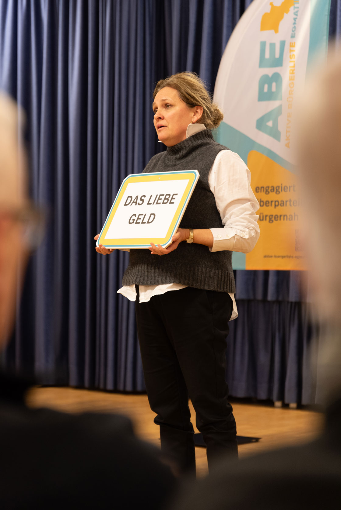 Vielen Dank für Euer Interesse – letzten Donnerstag durften wir uns persönlich vorstellen. Im Haus der Gemeinde stand das Haus der Aktiven Bürgerliste Egmating, das mit vielen Themen von den Kandidatinnen und Kandidaten gefüllt wurde. Von unserem Fundament – der Natur – ging es über die Bauprojekte der Gemeinde, die Dorfentwicklung, Arbeiten im Ort, Mobilität, das Leben im Alter, die Anliegen von Kinder und Jugend bis zu den Vereinen – Egmating erleben! Ein weiterer Schwerpunkte neben der Wärmeerzeugung ist vor allem unsere Trinkwasserversorgung – alles unter dem Aspekt der Finanzierung – sinnbildlich dafür stand „das liebe Geld“ – die Gemeindefinanzen, die in Zeiten von steigender Kreisumlage sorgfältig und priorisiert verwendet werden müssen.
